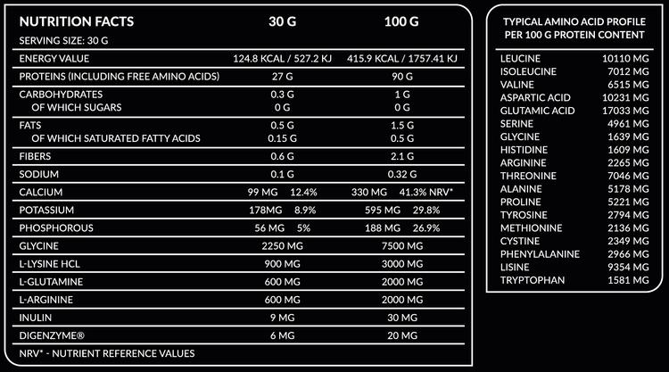 A fehérje hozzájárul az izomtömeg növekedéshez és izomtömeg fenntartásához, valamint a normál csontozat karbantartásához. *